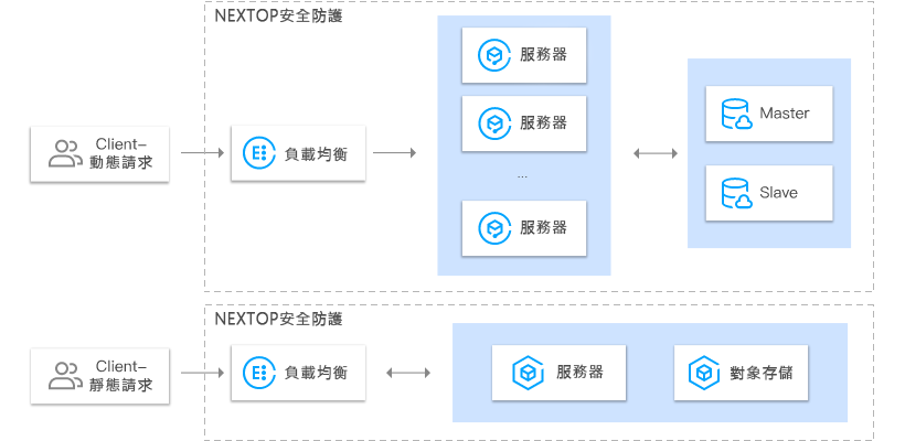 -業務動靜分離,靈活轉發:當業務請求量較大時,可以通過區分網站的靜態和動態請求,有針對性的對其進行分發處理,有效減少後端負載壓力。其中動態請求可以通過單獨部署負載平衡及關聯的後端伺服器集群進行處理;靜態內容可以通過接入 CDN 服務,通過對象儲存進行優化,顯著提升加載速度。