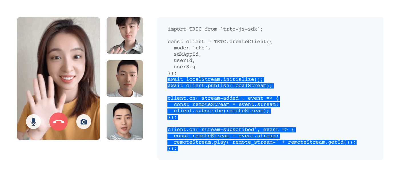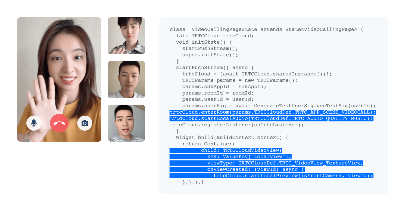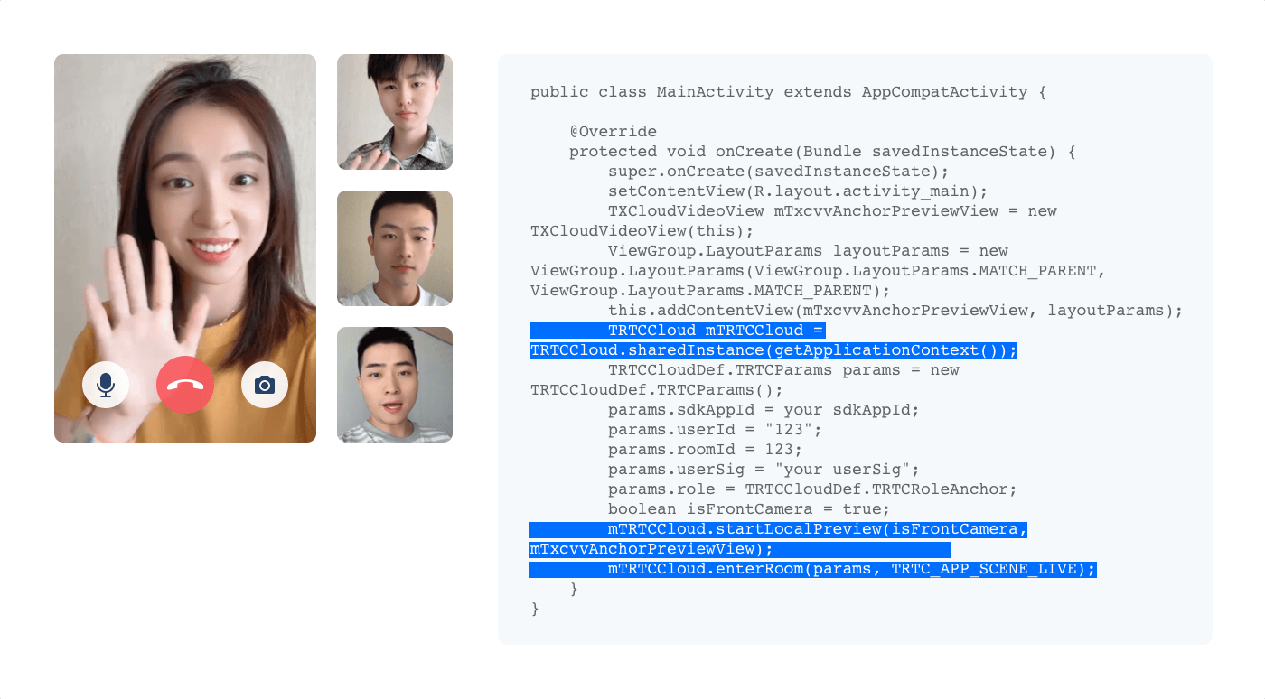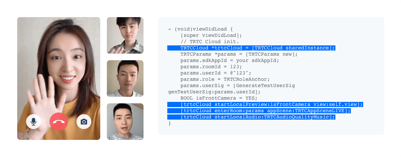 提供影音通話、影音會議、互動直播等開源UIKit以及覆蓋全平台的代碼示例幫助開發者以最簡單的方式開發。